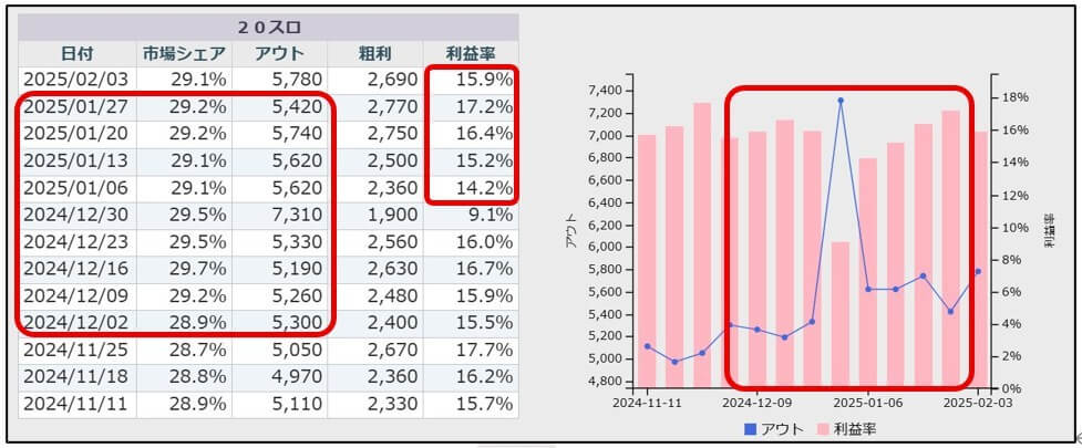 ③ 設定①の台数を50%以下まで減らして利益&稼働大幅増の実例