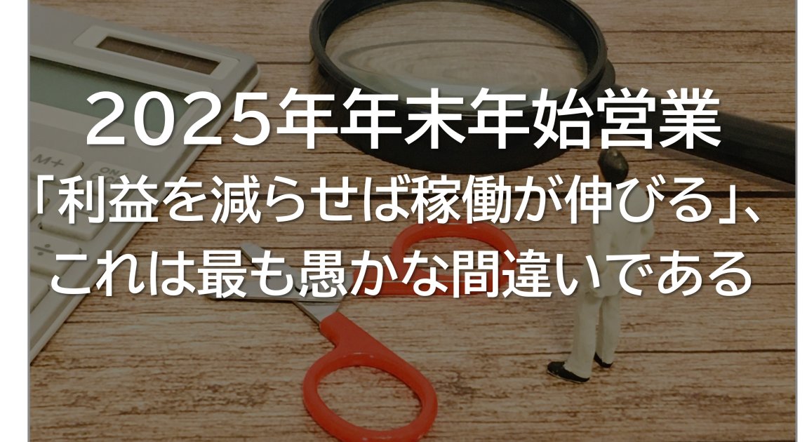 「2024年年末年始営業、緊急提言!「利益を減らせば稼働が伸びる」、これは最も愚かな間違い~決して日和るな!~」と題したコラムを発表しています。