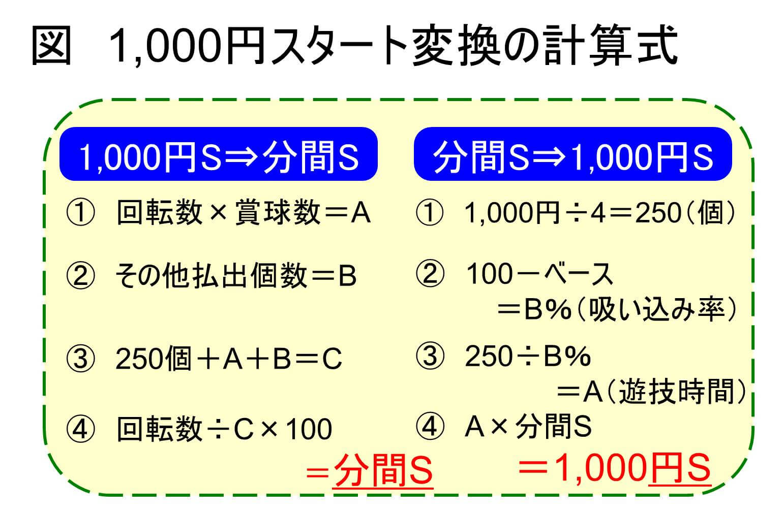 では絶対に比較ができないか、というとそのようなことはありません。1,000円スタートをアウト100個当たりのスタート回転数に計算して変換すればよいのです。